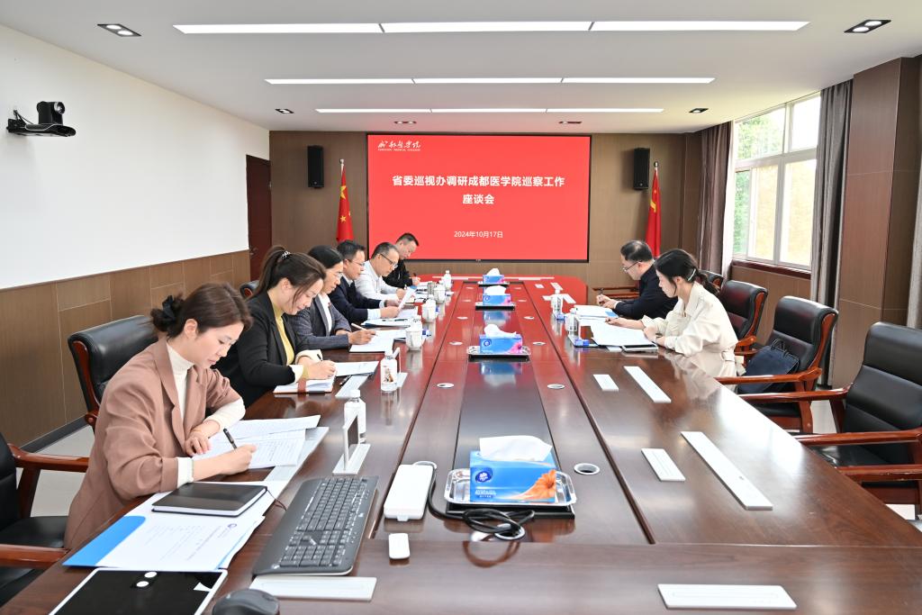 校领导围绕省管企业、省属高校党委巡察工作推进会以来,我校巡察机构设立和人员配置、首轮巡察工作开展情况、下一步工作方向、存在的困难和意见建议等进行了现场汇报,双方开展深入座谈交流。省委巡视办领导就高校巡察相关政策和业务工作进行了现场解答和辅导。